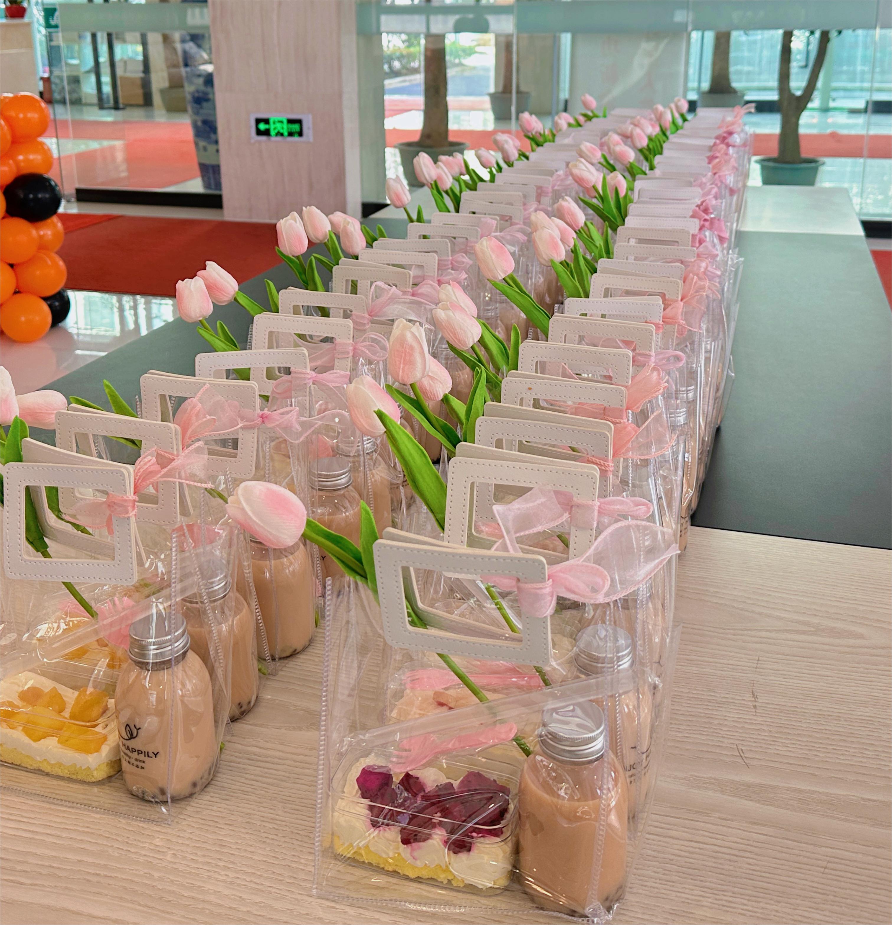 會(huì)后,韓董事長(zhǎng)親自為每一位女性員工發(fā)放了下午茶,郁金香、甜品和奶茶。這可是公司精心為女神們挑選的噢~