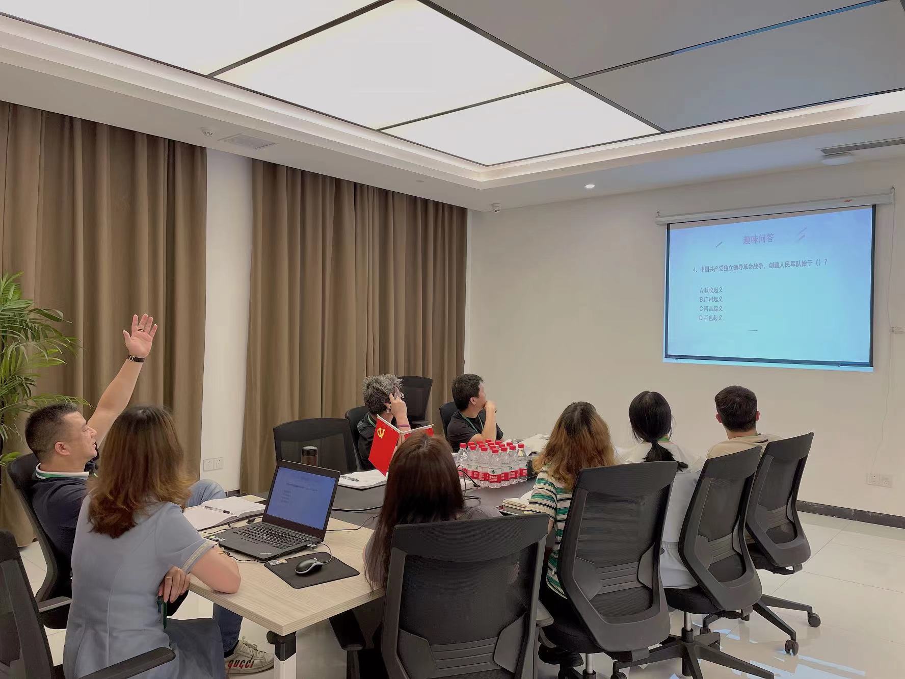 通過轉(zhuǎn)正預(yù)備黨員儀式、學(xué)習(xí)黨史(包含七一建黨節(jié)的由來歷程等)、互動(dòng)活動(dòng)、電影《黑狐之絕地營(yíng)救》賞析等環(huán)節(jié)深切祝福黨的101周年華誕,展現(xiàn)宇諾始終堅(jiān)持以高質(zhì)量黨建引領(lǐng)高質(zhì)量發(fā)展的澎湃活力,更好地激勵(lì)黨員干部奮發(fā)努力、勇毅前行,以實(shí)際行動(dòng)迎接黨的二十大勝利召開。
