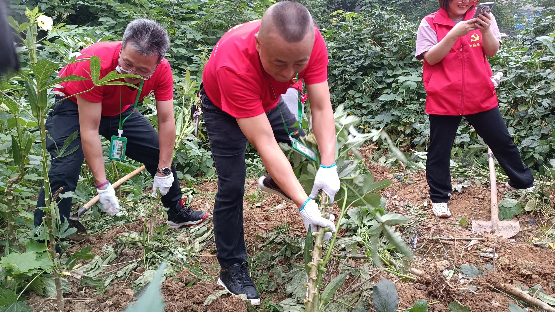 為祖國(guó)母親慶生之后,宇諾科技黨員服務(wù)隊(duì)前往庭院進(jìn)行勞作。隊(duì)員們拿起鐵鍬,幫助清理菜園子,將枯死的秸桿鏟除清到外面。