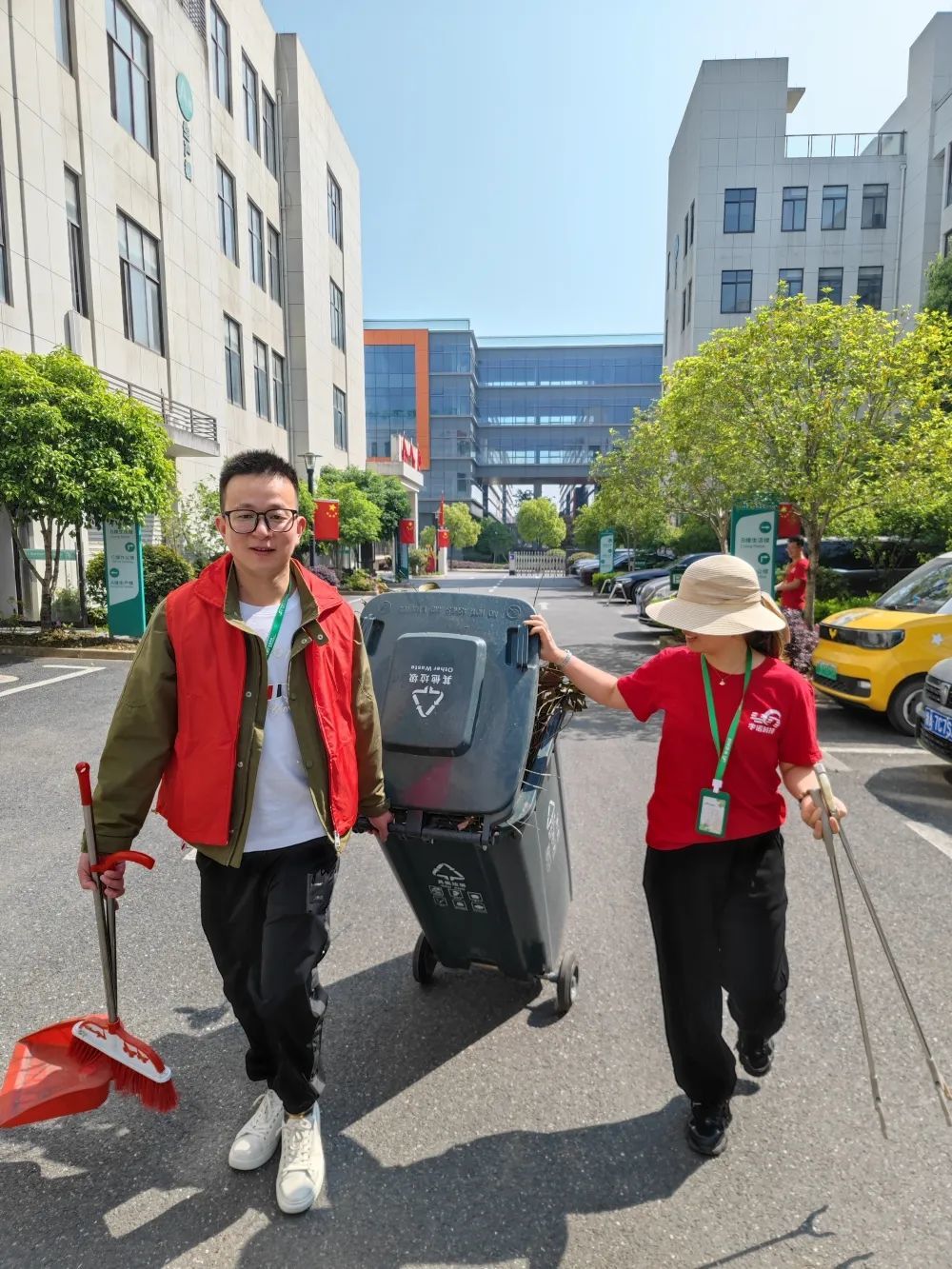 在對(duì)園區(qū)進(jìn)行全方位清掃后,黨支部成員們帶上清潔工具,走出園區(qū),對(duì)周邊的環(huán)境進(jìn)行清潔。
