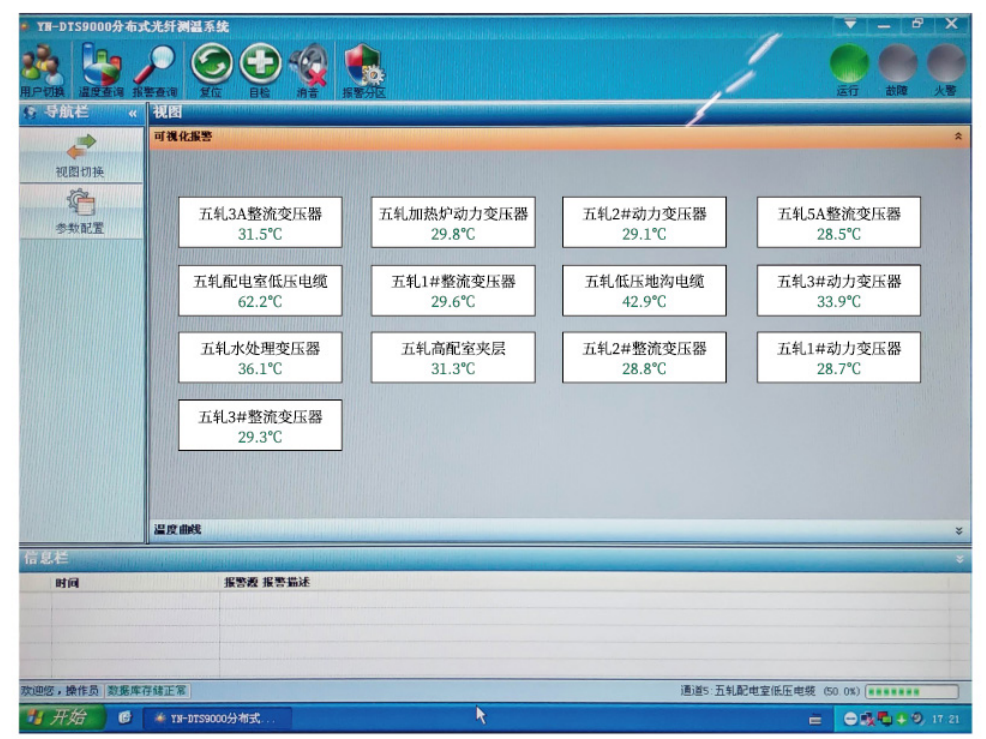 實時顯示溫度分部曲線和待測區(qū)域報警狀態(tài),可根據(jù)實際工況分區(qū)設(shè)置多級報警閾值,并提供歷史數(shù)據(jù)查詢及統(tǒng)計分析功能。同時,可針對客戶具體應(yīng)用,量身定制開發(fā)功能模塊,如可視化界面,電力載流量監(jiān)測模塊,遠程中央監(jiān)控模塊等。